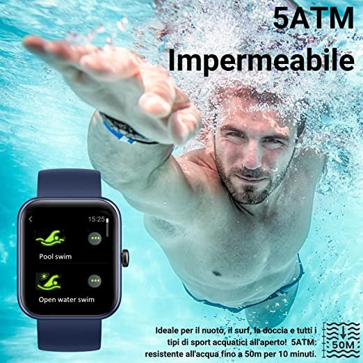HOAIYO Smart Watch for Health and Fitness, Alexa Built-in, Heart Rate, Music, Sleep, Blood Oxygen Monitor, 5ATM Waterproof Swim Tracking, for iPhone Android Phones, Men's Women (Blue, 1.7 Inch)
