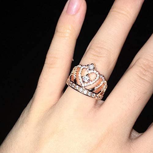 Presentski Women's Crown Ring Princess Queen 18K Gold Plated Crown Ring Small CZ Gift Girl Promise Ring