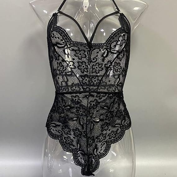 Women's Backless Sexy Lingerie Strap Bodysuit Halter Deep V Neck Teddy Lace Babydoll Underwear Nightwear